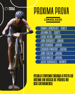 A equipe Pedala Itapema está pronta para encarar mais um grande desafio no cenário do mountain bike estadual. No próximo sábado, dia 7 de junho, os atletas representarão a equipe na 4ª Etapa do Ranking Catarinense de Cross Country Olímpico (XCO), competição organizada pela Federação Catarinense de Ciclismo. A prova será realizada na Pista do Brema, localizada no Sítio do Brema, Rodovia SC-108 (Rodovia do Arroz), no bairro Vila Nova, em Joinville.
