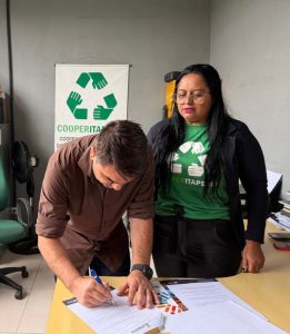 A Prefeitura de Itapema firmou, nesta terça-feira (18), um convênio com a Cooperativa de Trabalho dos Catadores de Materiais Recicláveis de Itapema (Cooperitapema) para o repasse de R$ 60.901,00, em parcela única, destinado a concluir obras e promover melhorias nas condições físicas e materiais de trabalho da cooperativa. A assinatura ocorreu na sede da entidade.